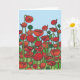 Beautiful Poppy flower field with bright red poppies on a gradient blue and green backdrop.