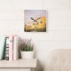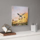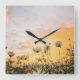 field with flowers square wall clock