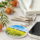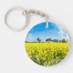 Field with yellow flowers and blue sky key ring