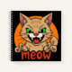 A menacing cat with glowing eyes, sharp teeth, and large claws is captured in a dark and eerie setting. Its fur bristles as it lets out a chilling "meow," embodying both ferocity and mystique. Shadows and a haunting atmosphere enhance its terrifying presence.