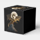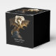A favour box with a fierce golden dragon rearing up with the full moon in the background. A slogan 'Wings of power, heart of fire' surrounds the picture. A great picture for a couple who enjoy fantasy. Contains generative content.