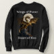 A fierce golden dragon rearing up with the full moon in the background. The words 'Wings of power, heart of fire' are written above and below. A great sweatshirt for a man or a woman who enjoys fantasy. Contains generative content.