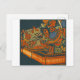 This postcard features a powerful and dynamic illustration inspired by traditional Japanese woodblock print aesthetics.