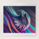 Fierce Neon Eagle — Stylised Head with Geometric Jigsaw Puzzle