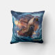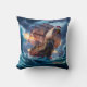 Fierce Pirate Ship Engaging Stormy Seas at Dusk Cushion