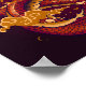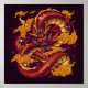 This design is a fiery red dragon surrounded by swirling clouds. The scales of the dragon are pretty detailed that has a metallic sheen. The dragon has its mouth open showing its sharp teeth. It has swirling orange and yellow clouds around it creating a nice dynamic background.