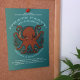 Invitations for a pirate or nautical themed event, featuring a cartoon of a rust red octopus with a mean frown, curling tentacles spread in all directions and fleshy coloured suckers exposed. A shoal of fish stream past in the background. For fans of octopuses and cephalopods with attitude. Personalise to suit your event with changes to the editable text fields. Customise your invitations to change the ocean green background colour which surrounds and shows through the semi-transparent background shape.
