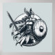 Fierce Valkyrie Warrior – Norse Mythology Line Art Poster