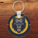 Fierce Wolf Illustration with Circular Design Key Ring