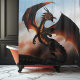 A dramatic and powerful fantasy painting featuring a fierce amber coloured dragon with outstretched wings, glowing highlights, and a commanding pose against a smoky blue sky. Perfect for fantasy lovers, dragon enthusiasts, and fans of mythical creature art and epic fantasy-themed collections.