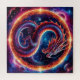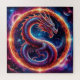 Vibrant illustration of a majestic dragon encompassed by a fiery ring set in a cosmic scene, symbolising mythical fantasy and celestial prominence.