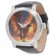 Fiery Galaxy Watch Face: A mesmerizing watch face showcasing a swirling nebula ablaze with vibrant oranges, reds, and yellows. Flecks of white glitter represent distant stars, creating a captivating dance of fire and cosmos.
