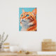 A vibrant orange tabby cat gazes upward with piercing blue eyes, exuding confidence and grace against a serene turquoise background. This bold and colourful artwork captures the majestic essence of feline beauty.