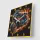 A vibrant motorcycle bursts with flames as it speeds through a dark, dramatic backdrop, capturing the thrill of freedom and adventure in motion.