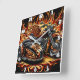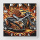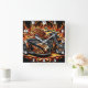 Fiery motorcycle with vibrant flames and sidecar square wall clock