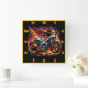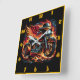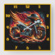 Fiery motorcycle with wings racing through flames square wall clock
