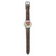 I like the illustrative watch with the lady on it. It is a great reminder that I am blessed and it has a very sturdy leather band. The colors are true and vibrant. Love the color of the Leather also. Very nice.