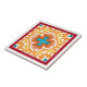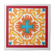 This beautiful tile features an exotic spanish tile design in a fiery orange kaleidoscope pattern with a blue accent in the centre. It makes a great trivet for the pretty tea or coffee pot on the patio in the morning.