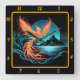 Fiery Phoenix Above Silent Mountains Square Wall Clock