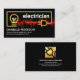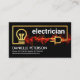 A gold electrical circuit is powered up by a hot fiery red electrical lightning. Riding on this lightning is the job title "electrician" which you can change to suit your own publicity needs. Near the card's base is your prestigious name and and the contact details.