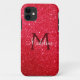 Fiery Red Sparkling Glitter Monogrammed Case-Mate iPhone Case