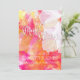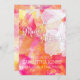 Bright fiery magenta, pink, yellow and gold watercolor strokes that say Bright Summer Tropical Sunset, accented with a white floral Hollyhock overlay.
