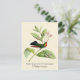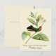 Post card with a vintage natural history illustration by Antoine-Germain Bevalet, c.) A colourful green and blue hummingbird with a bright red-orange throat perches on an oleander plant with pink flowers, on a light golden yellow parchment texture background. Digitally cleaned and enhanced while still retaining its vintage characteristics. Features common and scientific names in decorative fonts. Matching U.S. postage stamps available.