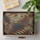 This hot design features black tiger stripes over a fiery orange and yellow background texture.