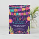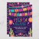 Colourful fiesta all night siesta all day bachelorette invitation featuring bunting flags, flowers, confetti & cactus plants