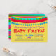 Fiesta baby shower invitations with colourful background and stylish text and layout. These cute fun fiesta baby shower invitations are easily customised for your event by simply adding your details.