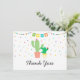 This cute baby shower thank you card features a mum and baby cactus with colourful fiesta flags and confetti.