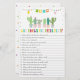 These adorable Who Knows The Bride Best Cards are a fun Bridal Shower activity. Simply pass them around during the shower where guests will have fun answering questions about the bride to be! The person with the most correct wins! The design features colourful fiesta banners and cactuses.