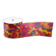Fiesta Circles has circles in various sizes in coordinating colours of orange, yellow, red, teal and purple on a wide ribbon suitable for many uses.