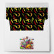 This white envelope opens to a bold black liner scattered with red, yellow & green chilli peppers, while the front flaunts a colourful taco-and-tequila vignette—complete with margaritas, sombrero, cactus, and fluttering papel picado. Personalise it with your own return address and spice up “Nacho Average Birthday,” Cinco de Mayo, or any hot-sauce-worthy celebration. Perfect for matching Fiesta invitations and guaranteed to heat up mailbox excitement!