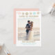 Fiesta flower banner in soft pastel colours with whimsical text. Love is patient, us, not so much, elopement announcement with photo. Gold, pink and blue fiesta paper flowers with script style text for the couples who just couldn't wait any longer to get married.