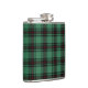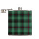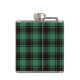Flask with an early district tartan pattern for Fife, Scotland. Traditional vintage Scottish plaid from 1880, in shades of light forest green and black with bright red accents.