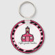 A keychain featuring the logo of The Pink Schoolhouse inside a zebra print frame with pink trim. Text reads "Fifth Grade Teacher."