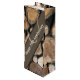 This wine gift bag is perfect for a 5th Wedding Anniversary. It features a stack of logs as a background, keeping in with the wood theme.