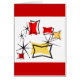 Return to the fifties with this red, black, and soft gold yellow design. Stars and other shapes give that retro mood.