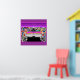Whimsical modernistic psychedelic hippies type look at the icons of the fifties in neon colours of pinks, purples, reds, blues.