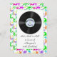 A fun birthday invitation with a 50's inspired theme. Colourful neon splattered border and vinyl record. Suitable for men and women of all ages. Easy to customise with the details of your event. Invitations come with envelopes.