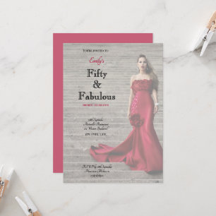 Emerald Green Dress Fifty & Fabulous 50th Birthday Invitation