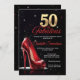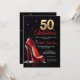 Fifty 50 & Fabulous BIRTHDAY Red Gold High Heels Invitation