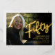 Fifty bold gold foil script text or your own foil colour. Personalise this 50th birthday party script photo birthday invitation with your own birthday party event details, and a photos of your birthday girl. Other years and matching items are available. © Original design by Sarah Trett for www.mylittleeden.com on Zazzle.