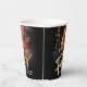 Fifty gold coloured style effect script text on black paper cups. Personalise these cups with two photos of your birthday girl turning 50, one on each side (for past and present plus add your own name or message. Ideal for a 50th birthday party or surprise half century event. Other years and matching items are available. © Original design by Sarah Trett for www.mylittleeden.com on Zazzle.