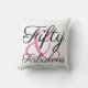 A simple, elegant pillow to celebrate a fabulous someone who is turning 50. Features the words "Fifty and Fabulous" in black and pink script text on a white background.