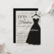 A Fifty and Fabulous script minimal black and white marble, modern 50th birthday invitation that you can personalise and send out for your fiftieth birthday party celebration. The words "Fifty and Fabulous" are set on a classy white and black marble background, with popular black and white script font typography, placed aside an elegant, sophisticated, stylish, vintage, black strapless evening gown. Have fun customising the name, date and time, location, and RSVP with the editing tool.