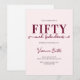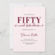 Fifty and Fabulous script minimal blush pink and burgundy modern 50th birthday invitation that you can personalize and send out for your fiftieth birthday party celebration. The words "Fifty and Fabulous" are set using popular script font typography. The text colors can be changed using the edit menu.