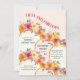 50th birthday party invitation for women. The design is titled "Fifty and Fabulous" and the template is set up for you to add your custom invite wording. This pretty floral design has modern gold arches and garlands of flowers and foliage in fruit salad shades of pink orange and yellow. Perfect for a surprise birthday bash, birthday lunch, garden tea party, spring summer or floral themed 50th birthday celebration!