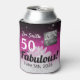 #50 or Fifty and Fabulous! Celebrate with fun black, pink, and white fun can cooler. Pale pink daisy with faux sparkle centre stands out against the soft hombre background. Pink and white star accents twinkle in the background of this original graphic design. White text 50 with purple and black cursive typography “fabulous”. Personalise the event with the Birthday girl’s name, photo, and birthdate.